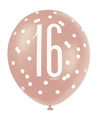 Assorted Rose Gold and White All Over Print 16th Latex Balloon