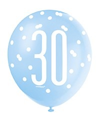 Assorted All Over Print Blue and Silver 30th Latex Balloon