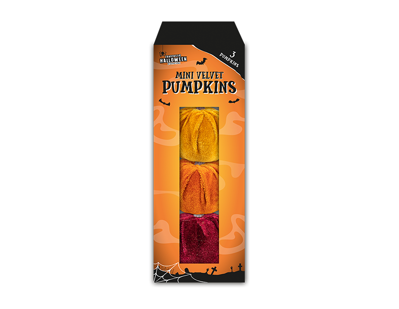 Halloween Mini Velvet Pumpkin Decorations (Pack of 3)